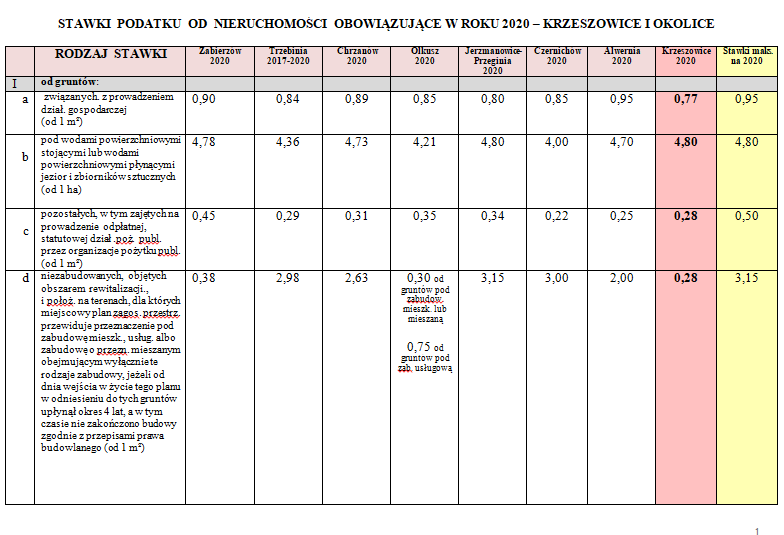 Informacja burmistrza w sprawie stawek podatkowych w 2020 r.