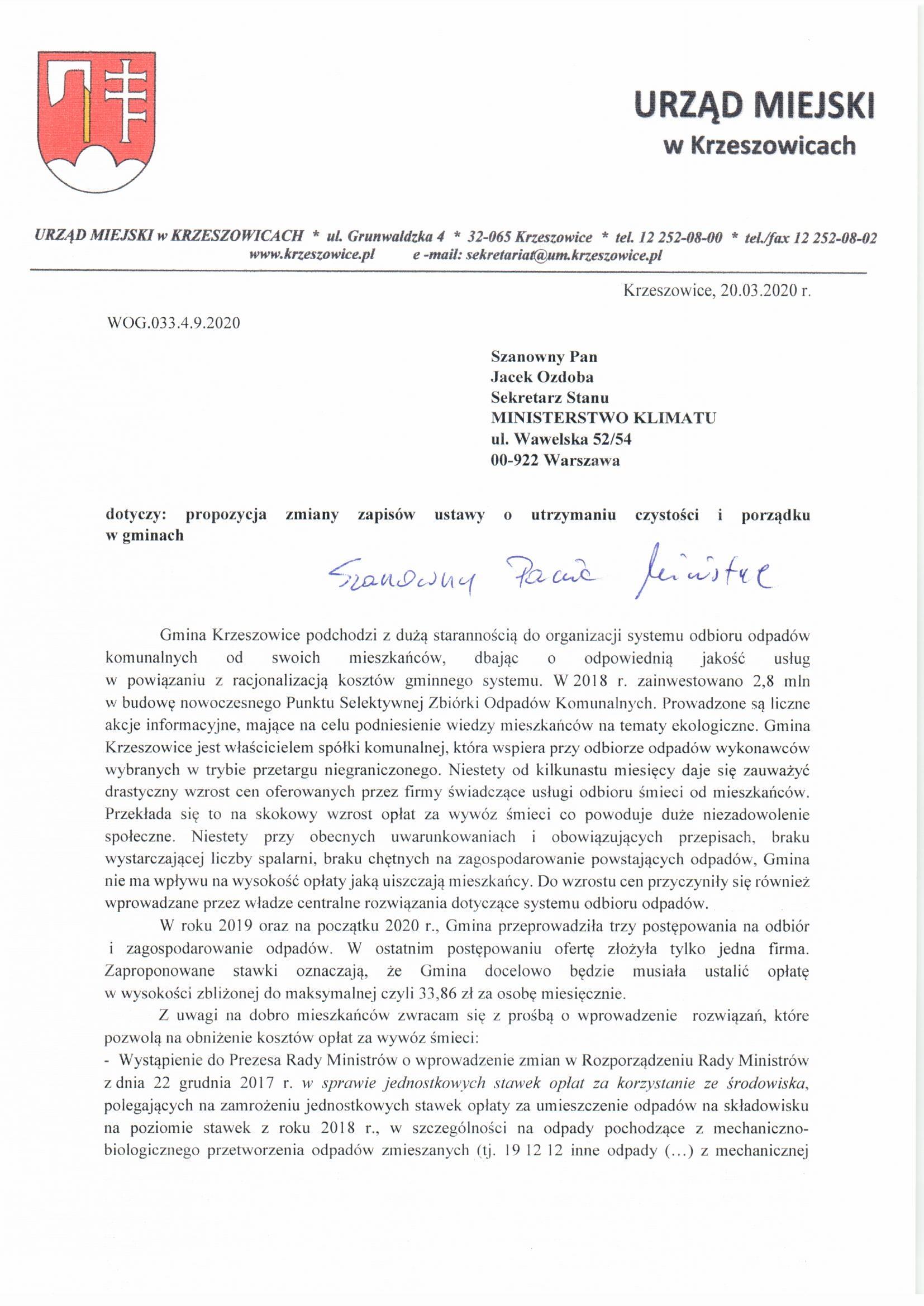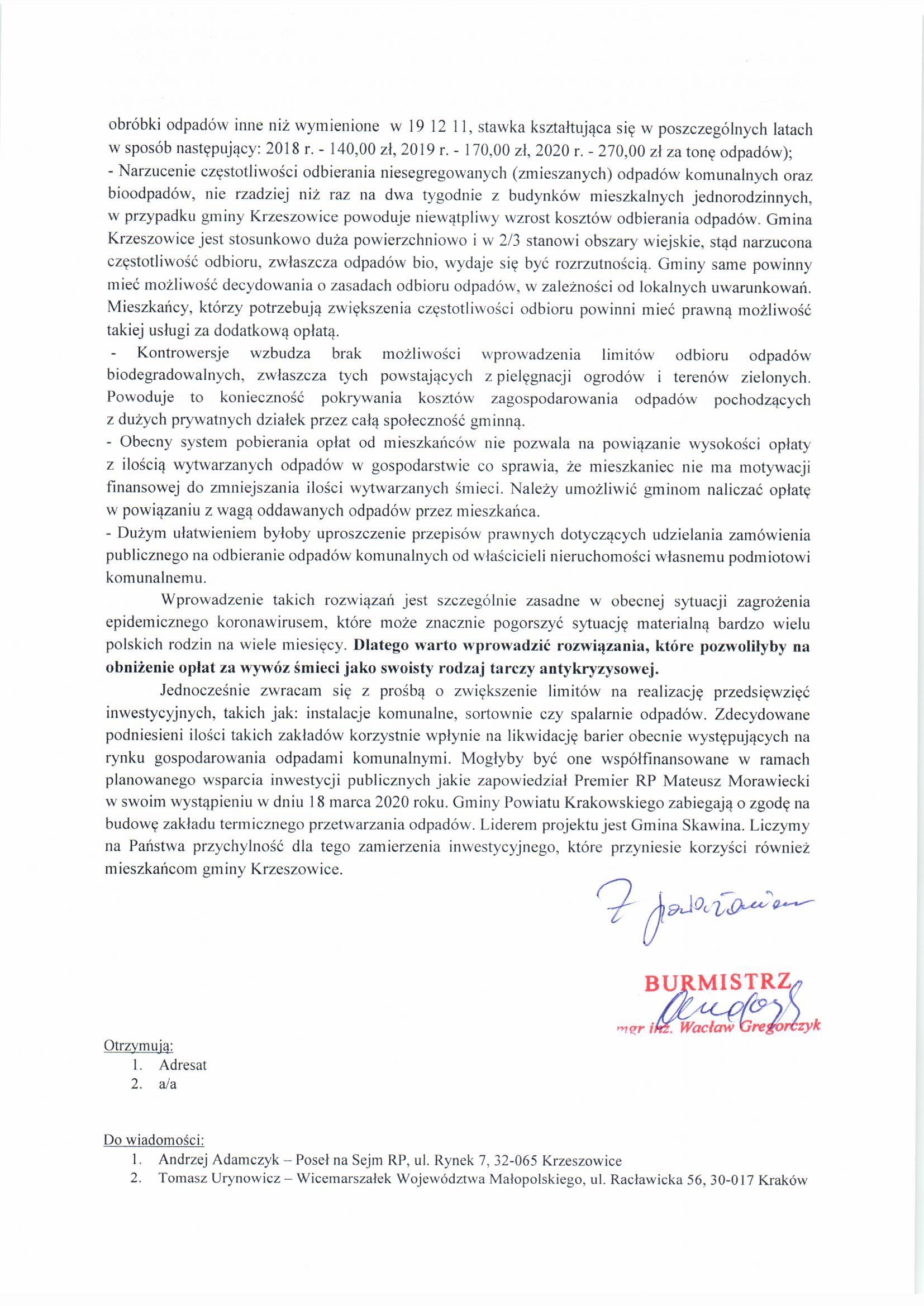 List burmistrza Wacława Gregorczyka do mieszkańców